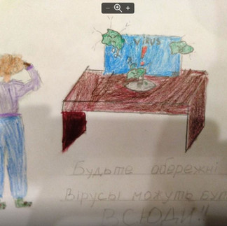 Учні Борисенко Андрій, Некрасова Марія, Шилкіна Ліза, Шеламков Ваня та Кравець Юля взяли участь у виставці соціальних плакатів "Ми – це те, що ми шукаємо в Інтернеті". У своїх роботах вони наголосили на головних правилах безпеки та впливі віртуального інформаційного простору на людство.