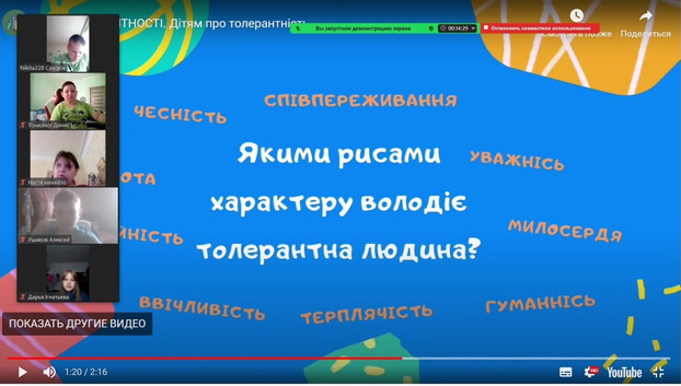 Загальний висновок із проведеного заняття це необхідність формування якостей толерантної людини з дитинства, усвідомлення толерантного ставлення до людей які чимось відрізняються від нас, - підсумувала Ірина Вікторівна.